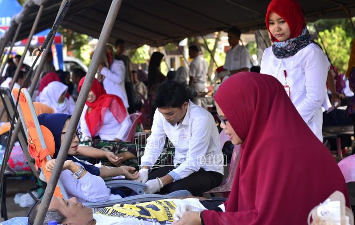 Unit Transfusi Darah (UTD) PMI Aceh Utara menggelar “Donor Darah Massal” yang dipusatkan di Lapangan Hira’ Lhokseumawe, Kamis (2/2/2017).