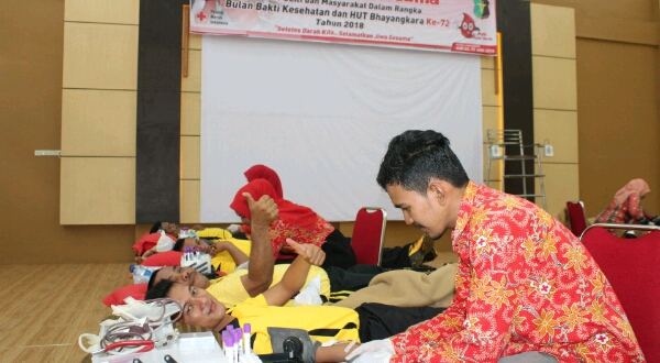 Lhokseumawe – Gedung serba guna nampak dipenuhi oleh petugas berseragam putih dan kuning, selain itu, beberapa anggota dari satuan TNI setempat juga terlihat sedang mengantre dan lainnya terbaring di tempat tidur lipat dengan selang yang terpasang di lengan, Jumat (29/6/2018).